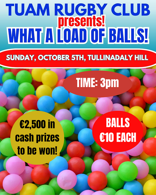 Next Sunday is our "What a load of Balls" fundraiser in Tuam.